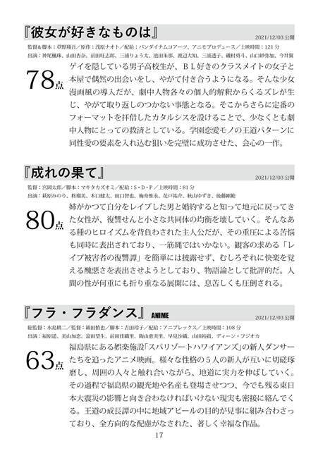 2021年10月から2022年9月に公開された新作邦画134本のレビューを書いています。